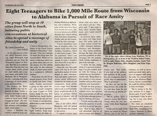 Riders for Race Amity honored with 2025 Race Amity Medal of Honor — A Midwestern cycling group committed to racial unity and interracial friendship has received the prestigious 2025 Medal of Honor, in recognition of their 1,200-mile ride from Wisconsin to Alabama, community service stops, and efforts to spark honest conversations about race across multiple states.